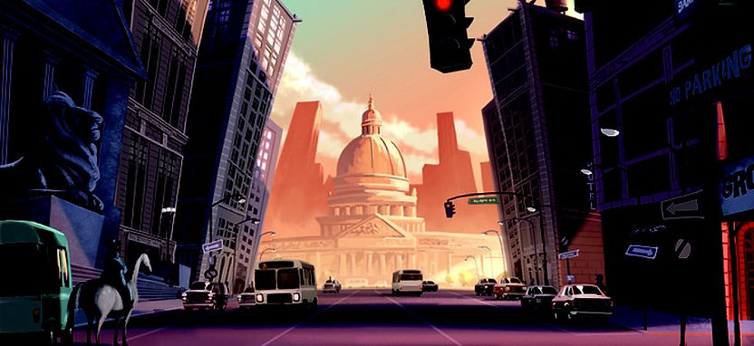 "Capitólio, onde as leis de estacionamento são promulgadas e as multas corretamente arquivadas! Você fica completamente tonto/a de excitação só de pensar na cambada de funcionários públicos que negociam requerimentos e em todos os burocratas de nível médio, que estão sempre achando novos meios para justificar a sua existência. Você todavia tem o que fazer e tem que seguir uma pista."